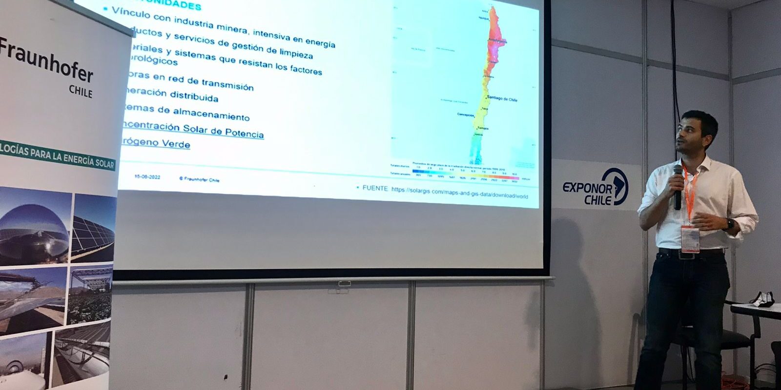 “Iniciativas regionales en nuevas energías” fue el nombre de la charla organizada por el programa Red+Energía, que contó con la participación del coordinador de proyectos del Centro de Tecnologías de Energía Solar de Fundación Fraunhofer, Thomas Lindsay, en el marco de la Feria Exponor 2022.