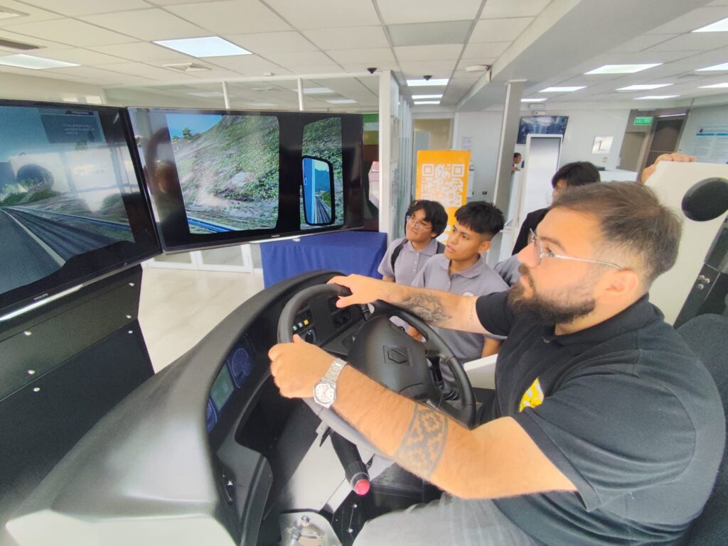 Entre los asistentes, Ashley Albornoz, estudiante de Construcciones Metálicas, expresó su entusiasmo: “Me pareció súper entretenido. Ver cómo se trabaja a gran escala y usar el simulador fue una experiencia única. Me llamó mucho la atención la tecnología”.