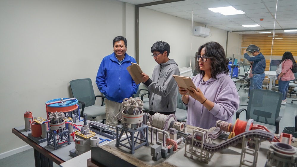 Un elemento que llamó la atención de los y las jóvenes fue la oportunidad de interactuar con la tecnología utilizada en CEIM en sus procesos de entrenamiento, sobre todo la realidad virtual, donde experimentaron procesos y manejos de equipos industriales, como si estuvieran en una faena minera.