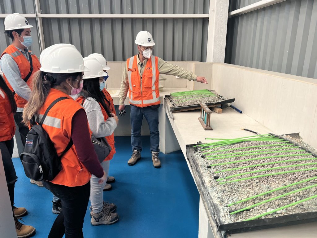 En la oportunidad, los jóvenes recorrieron un circuito que contempló los equipos de engrase centralizado, el Centro Integrado de Operaciones -CIO- equipos metalúrgicos, la correa transportadora, la planta desaladora y un espacio dedicado a las diversas tecnologías, como cursos sincrónicos, modelado 3D, impresión 3D, Realidad Virtual, Realidad Aumentada y Realidad Mixta, todas empleadas para la formación y entrenamiento de capital humano.