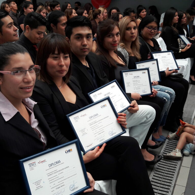 Nuevos alumnos reciben sus Diplomas al formarse en un oficio, al aunar esfuerzos el sector público, a través del Servicio Nacional de Capacitación y Empleo SENCE. OTIC Cámara Chilena de la…