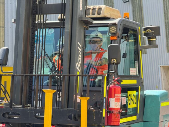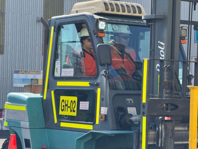 Trabajadores/as realizaron una clase práctica de Grúa Horquilla para aplicar el contenido y las competencias adquiridas previamente.